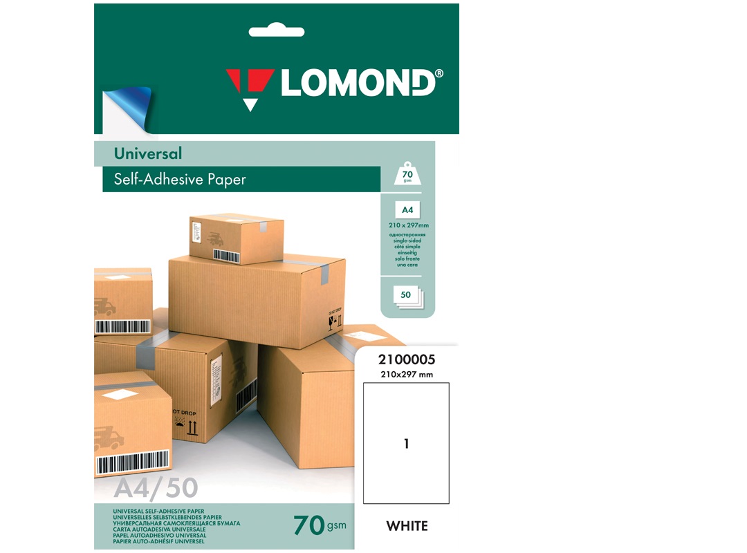 Бумага самоклеящаяся LOMOND 2100005 А4, 1 этик.,белая, 50л.
