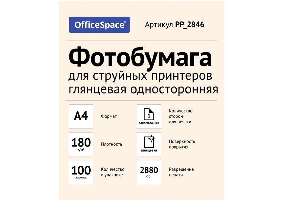 - Фотобумага OfficeSpace А4 180г/м2 PP_2846 (100л) глянцевая односторонняя