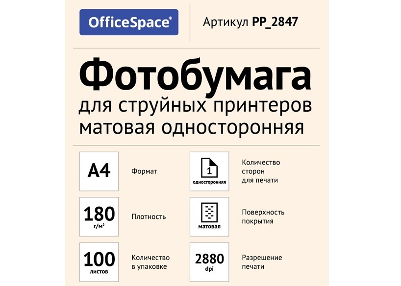 - Фотобумага OfficeSpace А4 180г/м2 PP_2847 (100л) матовая односторонняя