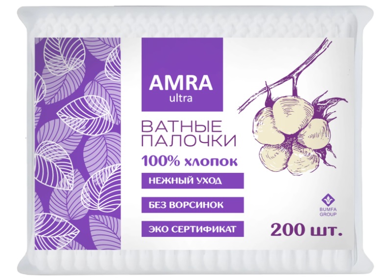 - Ватные палочки Amra 200шт полиэт.2527