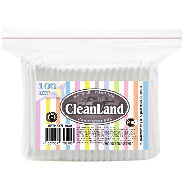 - Ватные палочки CleanLand 100шт полиэт.3183