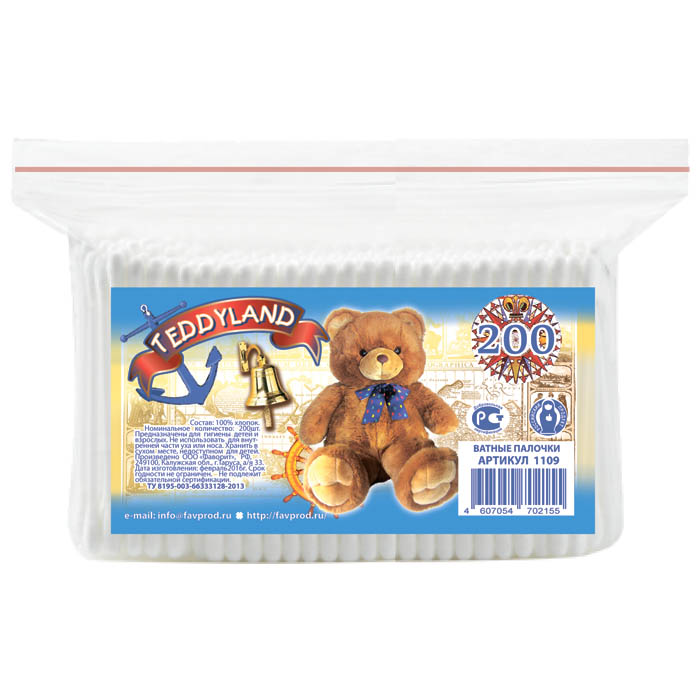 - Ватные палочки TeddyLand 200шт полиэт.2155
