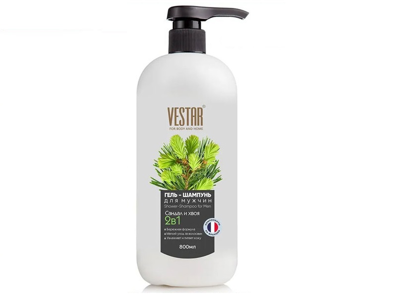 - Гель-шампунь мужской Вестар 0,8л 2в1 Сандал и хвоя курок