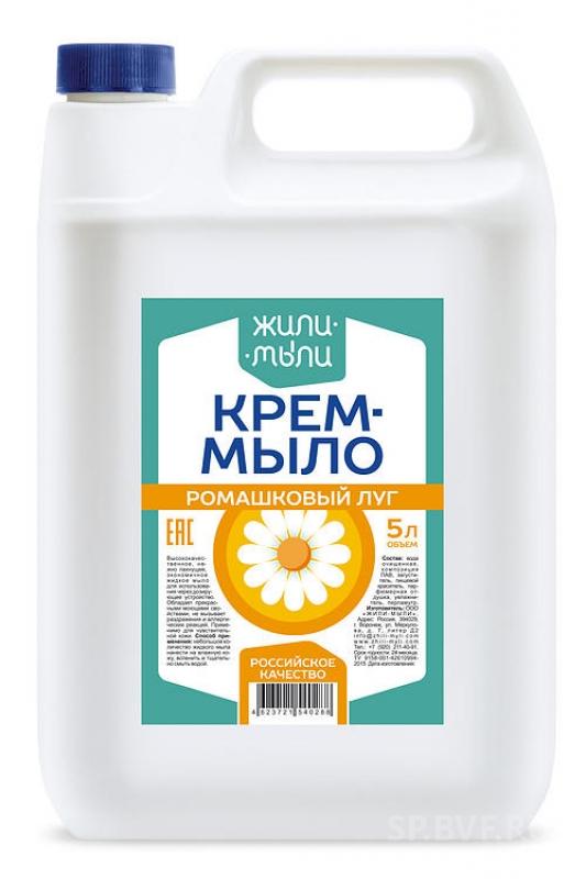 - Мыло жидкое 5л. Жили-Мыли крем Ромашковый луг матовый бутыль 0288