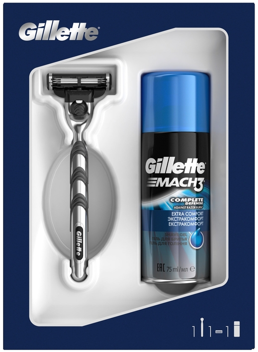 - Набор муж.Джиллет Mach3(Стан.1касс+гель д/бр.75мл)