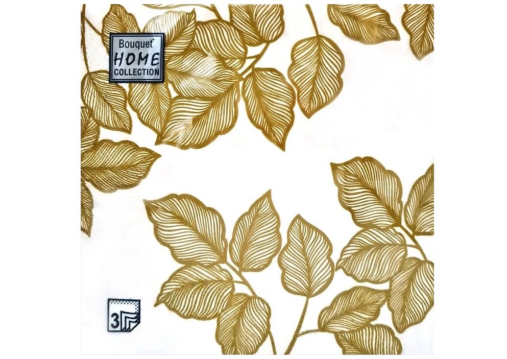 Салфетки 20л.3-х сл.Bouguet 33*33 Золотые узоры бежевый