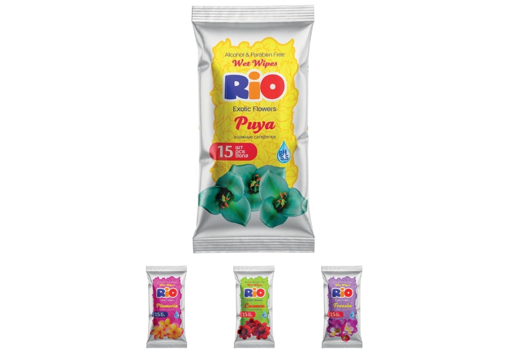 - Влажные салфетки Rio 15шт Цветы
