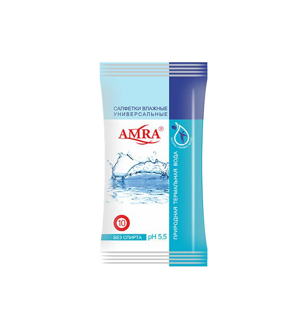 - Влажные салфетки AMRA 10шт Универс.на терм.воде 7799