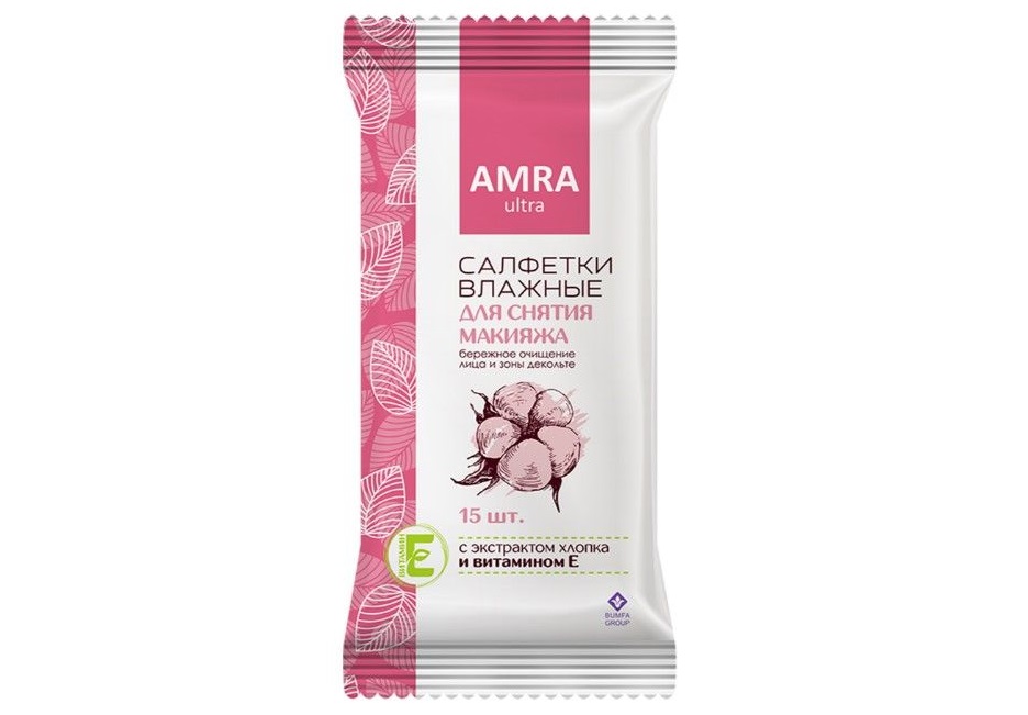 - Влажные салфетки AMRA 15шт д.снятия макияжа 5412