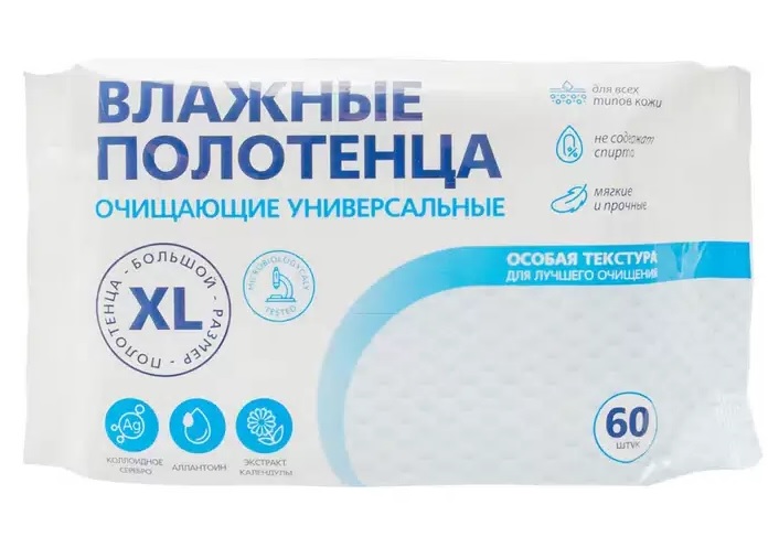 - Влажные полотенца XL универсальные освежающие 60шт.с клапаном