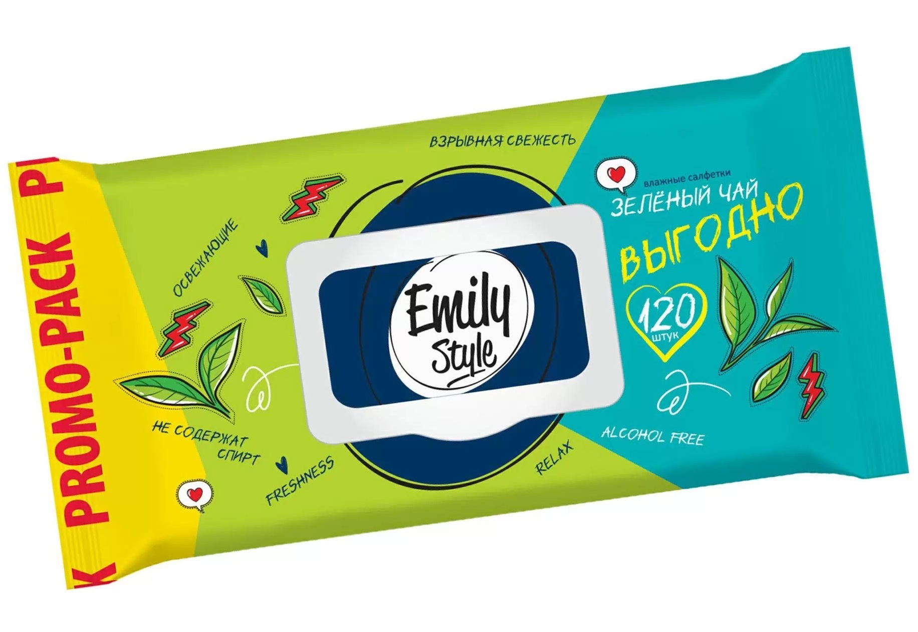 Влажные салфетки Emily Style 120шт.Зеленый чай клапан
