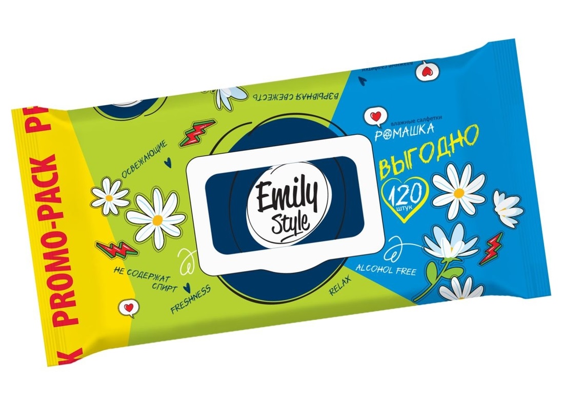 - Влажные салфетки Emily Style 120шт.Ромашка клапан