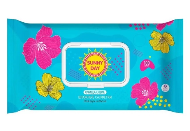 - Влажные салфетки Sunny Day 100шт очищающие