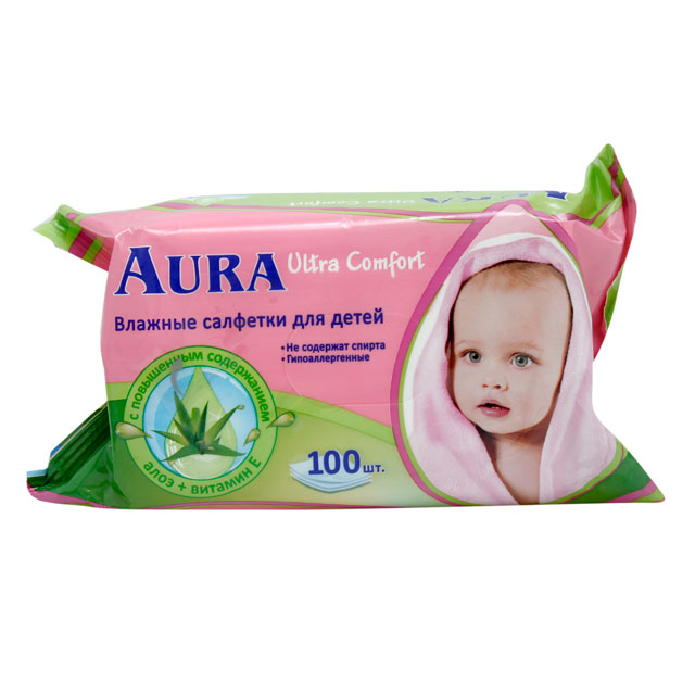Влажные салфетки Детские 100шт AURA Алоэ и вит.с кр.1894