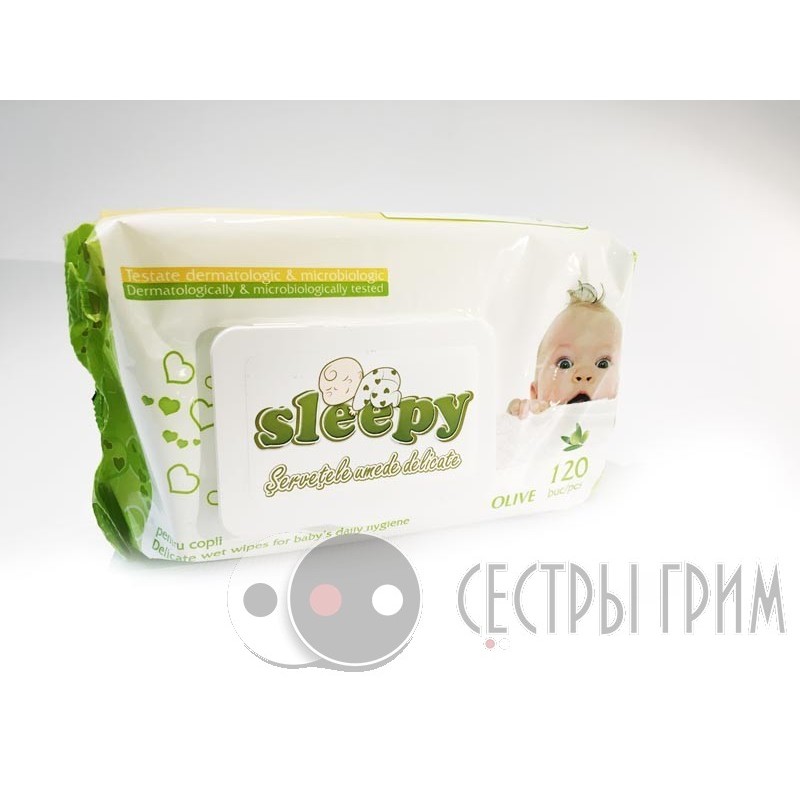 - Влажные салфетки Детские 120шт Sleepy Олива с кр.5436 зелен