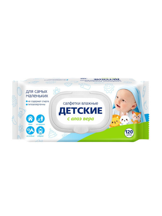 - Влажные салфетки Детские 120шт Алоэ вера крышка 0857