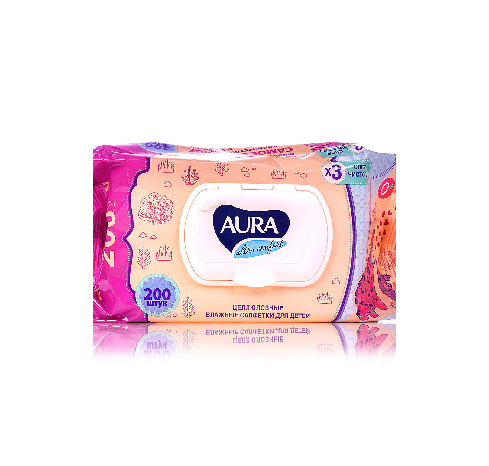 Влажные салфетки Детские 200шт Aura Ultra comfort с крышкой 3095