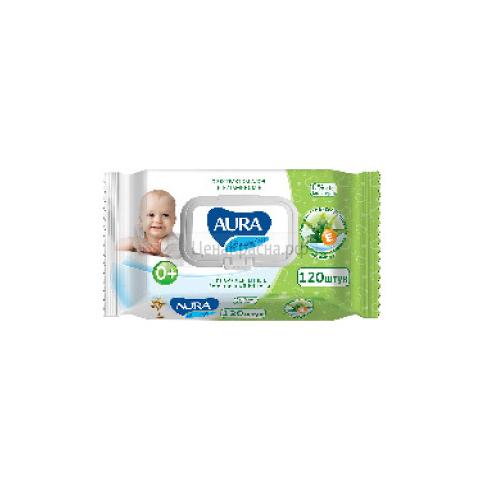 Влажные салфетки Детские 120шт Aura Ultra comfort Алоэ+вит.Е крышка 1733