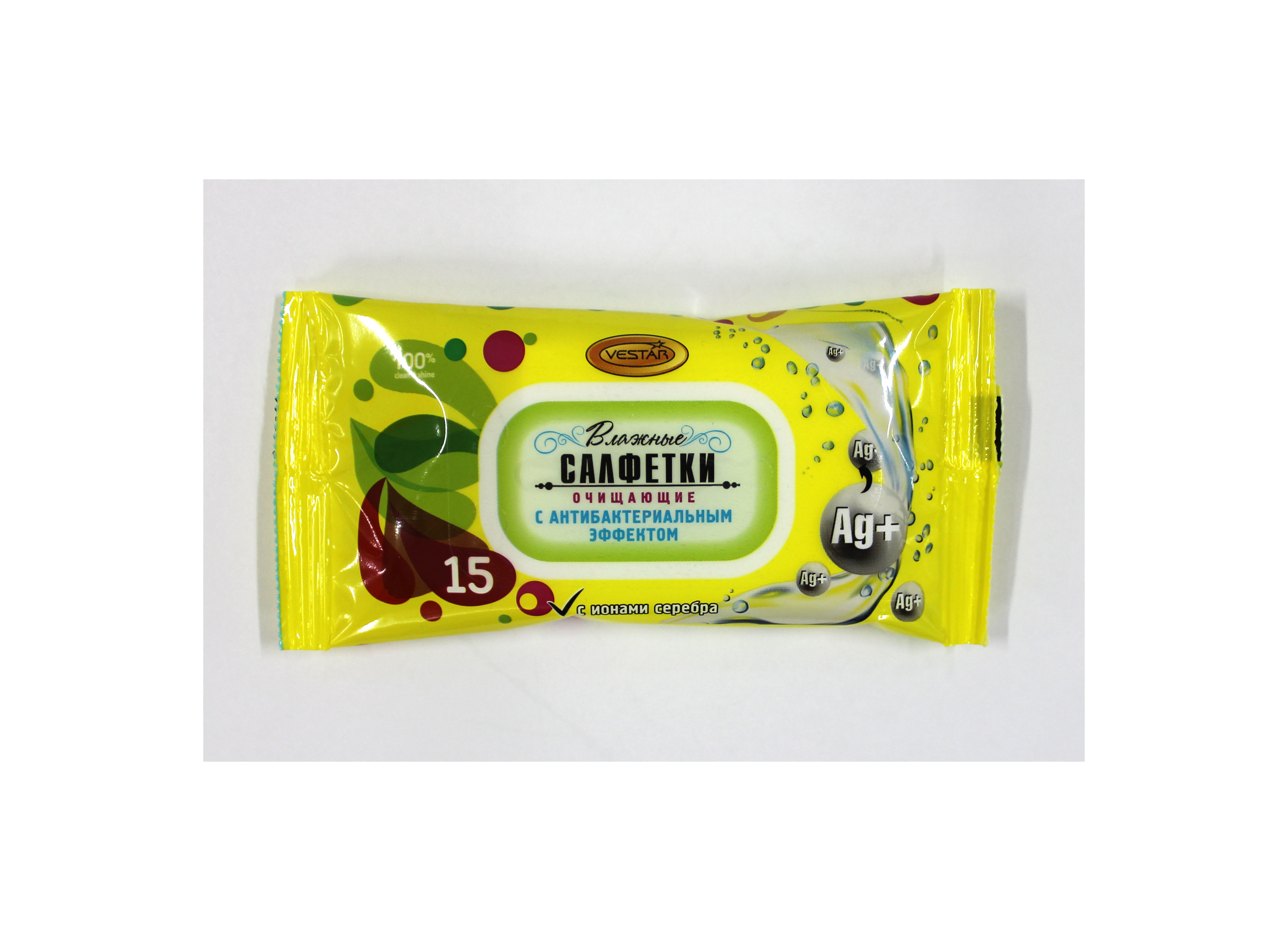 - Влажные салфетки антибактериальные Вестар 15шт.Эконом цветн.D6/4534