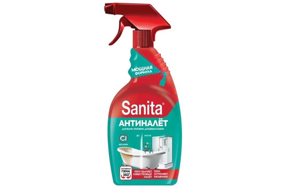 - Средство для ванн Санита 500мл и душевых кабин, раковин курок чистящее от известкового налета и ржавчины