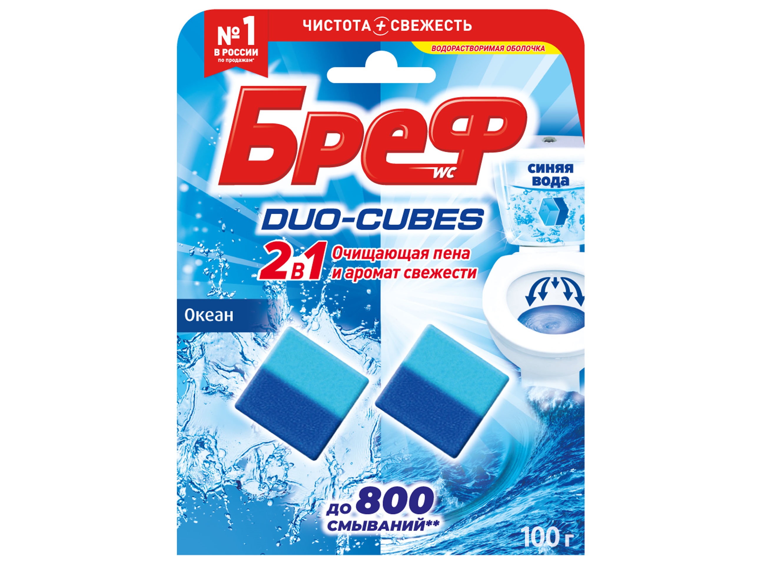 - Блок для унитаза БРЕФ 2*50гр кубики для сливного бачка Океан