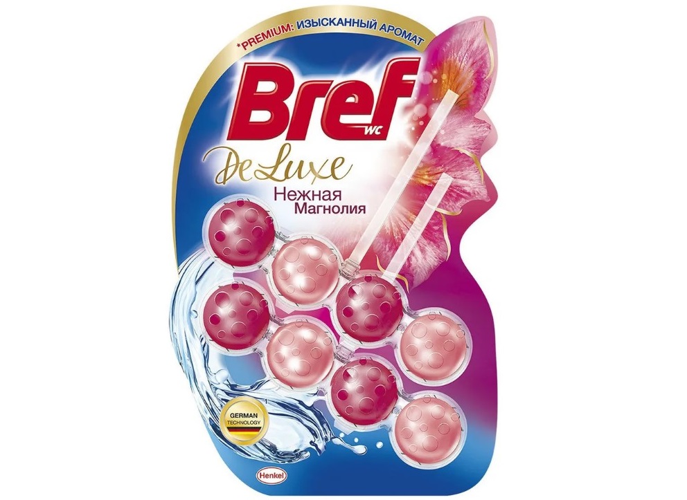 - Блок для унитаза БРЕФ 2*50гр. Deluxe Магнолия шарики