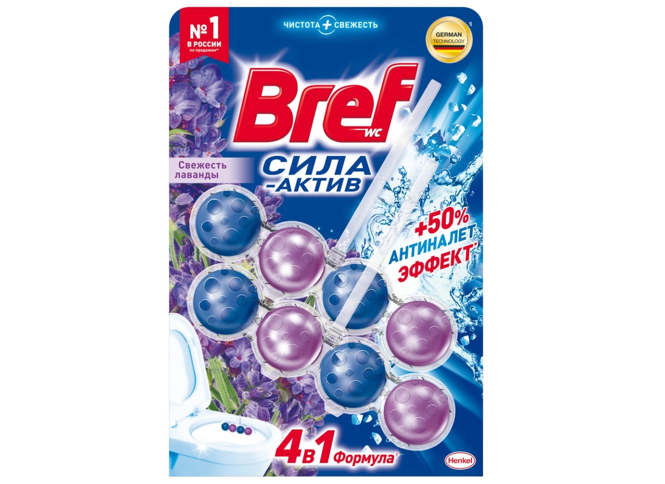 - Блок для унитаза БРЕФ 2*50гр. сила-актив Свеж.Лаванды шарики 6154