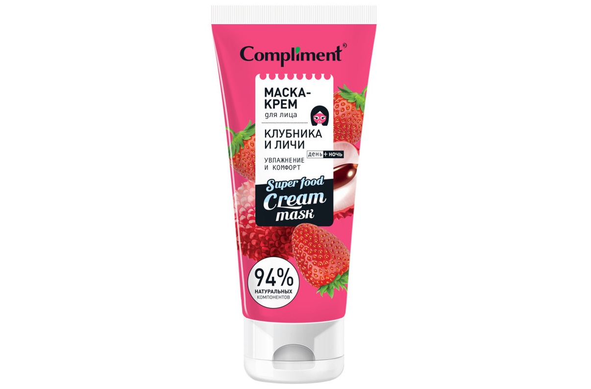 - Маска-крем для лица Compliment Клубника и личи увлаж.и комфорт