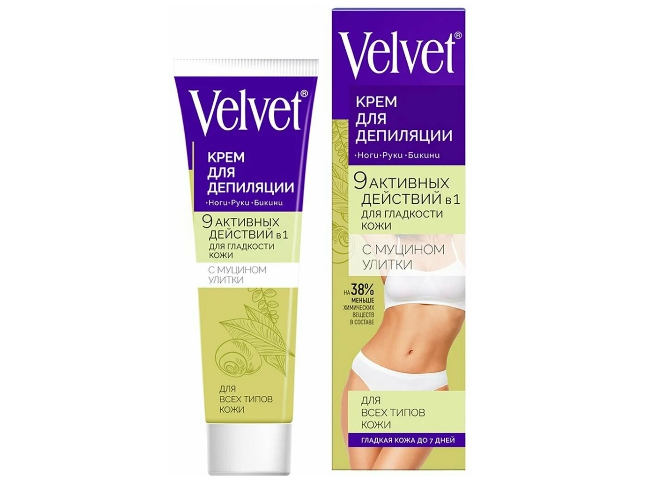 - Депилятор Вельвет 100мл.9в1 Увлажняющий Муцин улитки