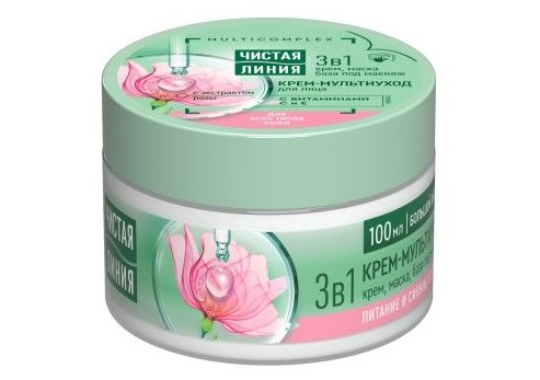 - Крем для лица Чистая линия 100мл. Роза и витамин для всех типов кожи