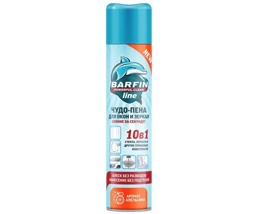 - Средство для стекол Barfin 300мл Чудо-пена Апельсин для стекол и зеркал