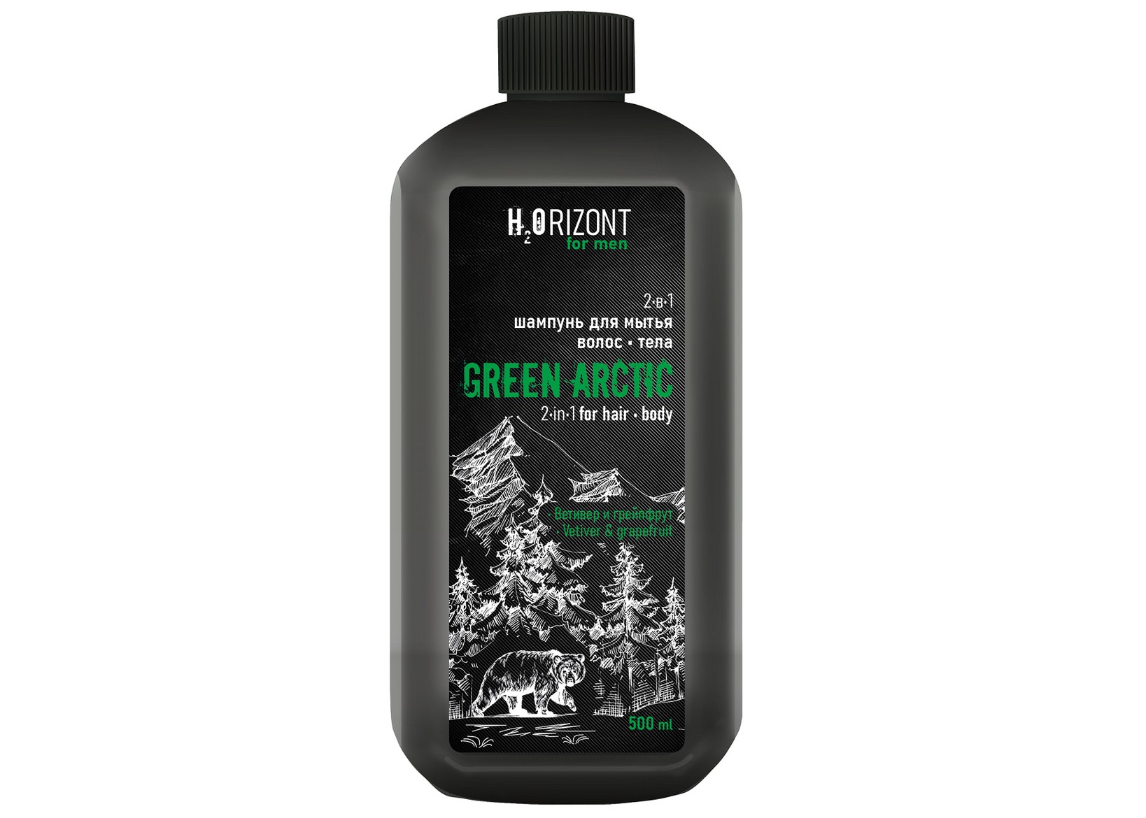 - Шампунь мужской Family Н2 Orizon 500мл.2в1для волос и тела Green Arctic