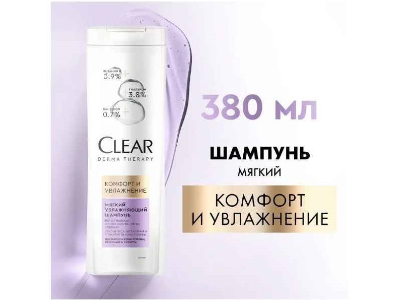 - Шампунь Clear против перхоти 380мл.Комфорт и увлажнение 2561