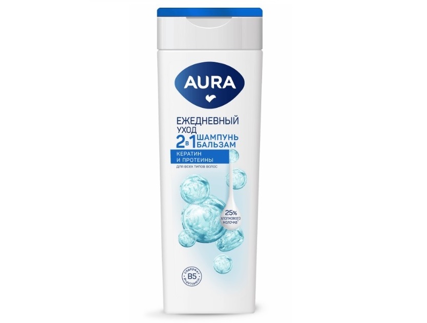 - Шампунь AURA 380мл.с бальзамом 2в 1 Ежедневный уход