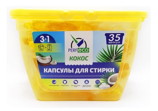 - Стиральный порошок Капсулы Perfeco 35шт.10гр. 3в1 Кокос