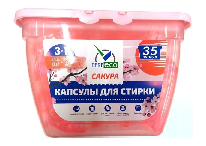 - Стиральный порошок Капсулы Perfeco 35шт.10гр. 3в1 Сакура