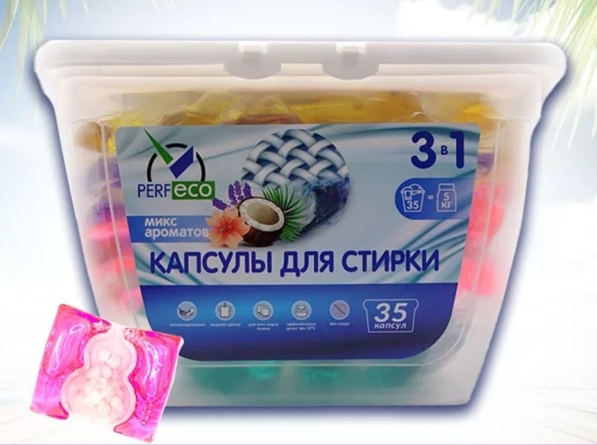 - Стиральный порошок Капсулы Perfeco 15шт.8гр. 3в1 №3 Микс ароматов