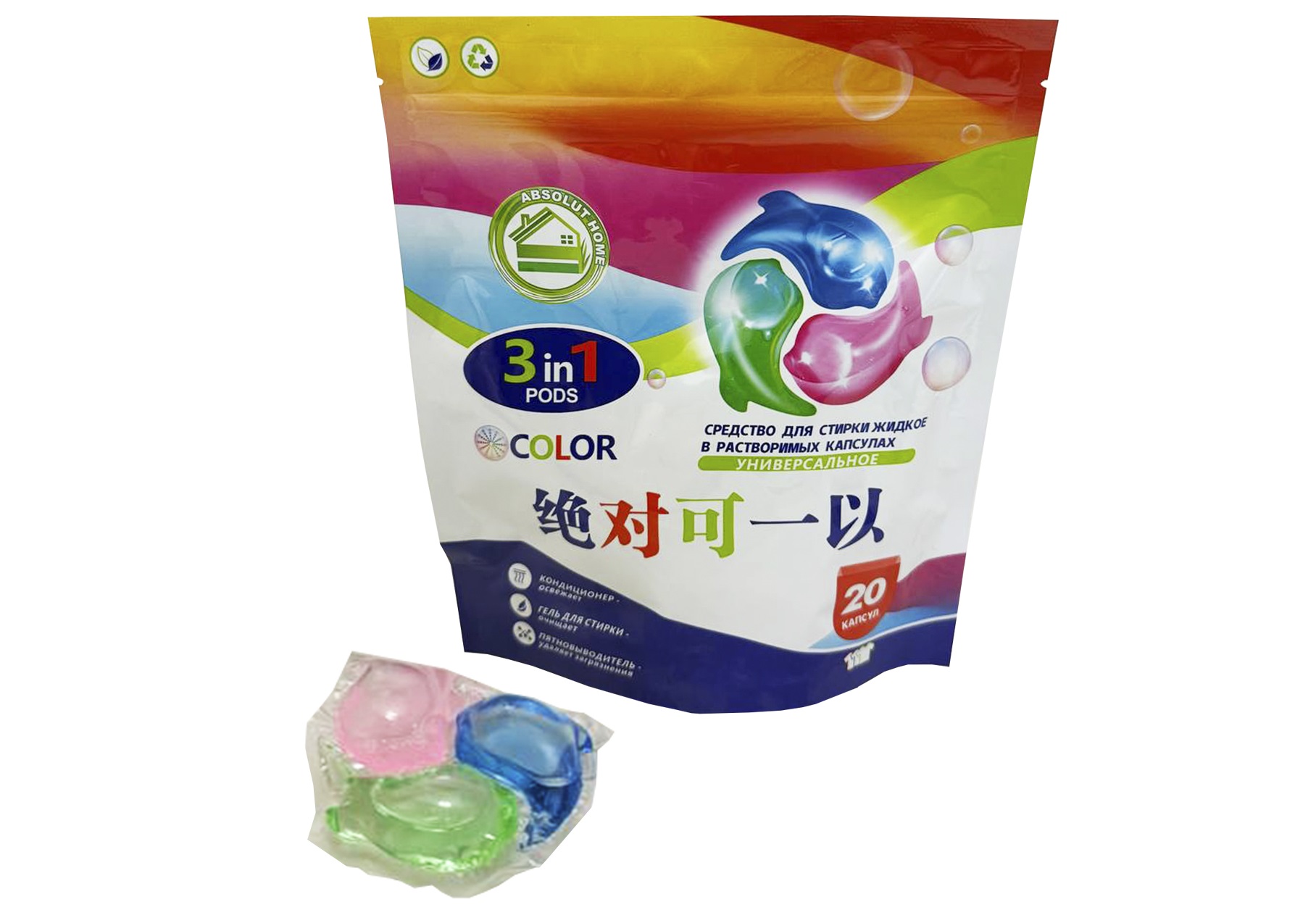 Стиральный порошок Капсулы Absolut Home 20шт*10гр 3в1 Колор упаковка дой-пак