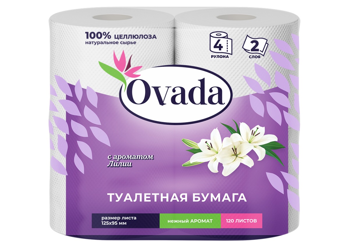 - Туалетная бумага Ovada 4шт.2-х сл. Лилия