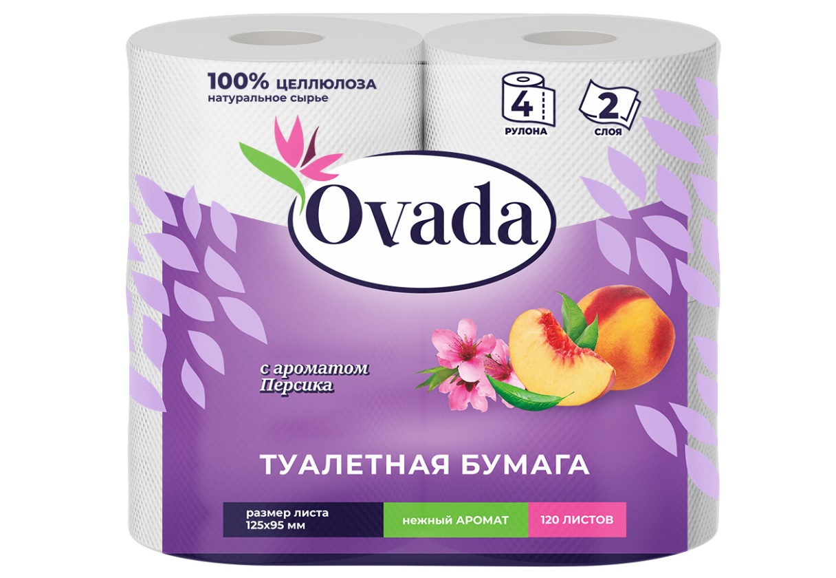 - Туалетная бумага Ovada 4шт.2-х сл. Персик