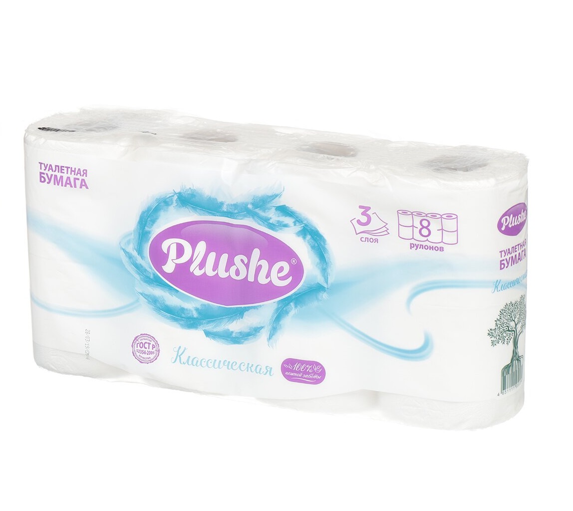 - Туалетная бумага Plushe Делюкс 8шт.3-х сл.Белая 15м