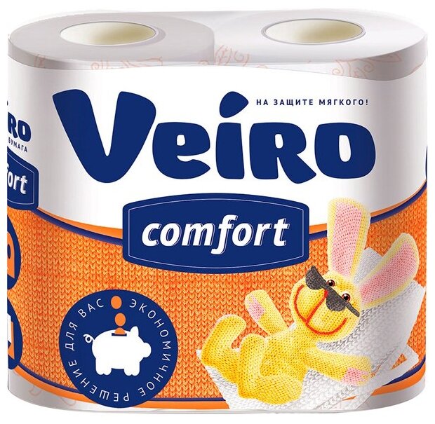 - Туалетная бумага Вейро 4шт.Комфорт 2х.слойная Белая(Сыктывкар)7413