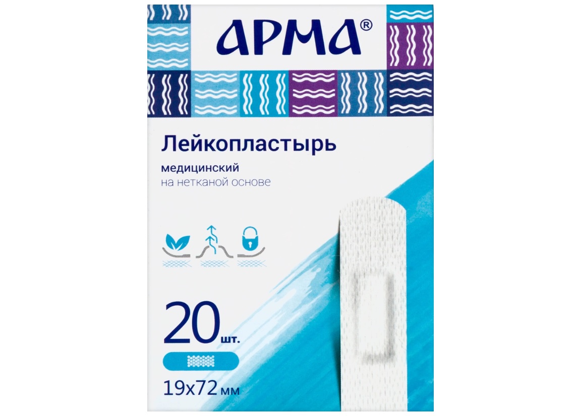 - Пластырь медицинский Арма нетканный белый 19*72мм