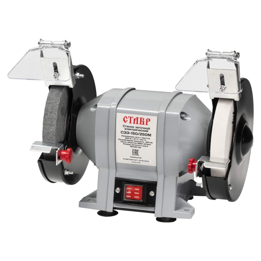 Станок заточной электрический 250Вт, 2950 об/мин, круг 150*20мм, посадка 12,7/32мм, заточной и доводочный круг