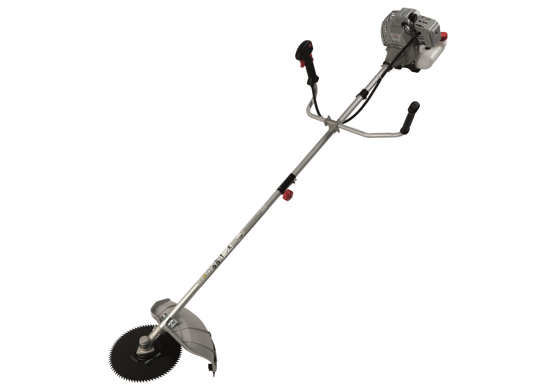 Триммер бензиновый, 1700 Вт/2,3л.с, объем двигателя 52,7см3, ширина скашивания 440мм, количество оборотов(леска) 9000 об/мин, штанга неразборная , тип запуска ручной, комплектация : нож, леска, наплечный