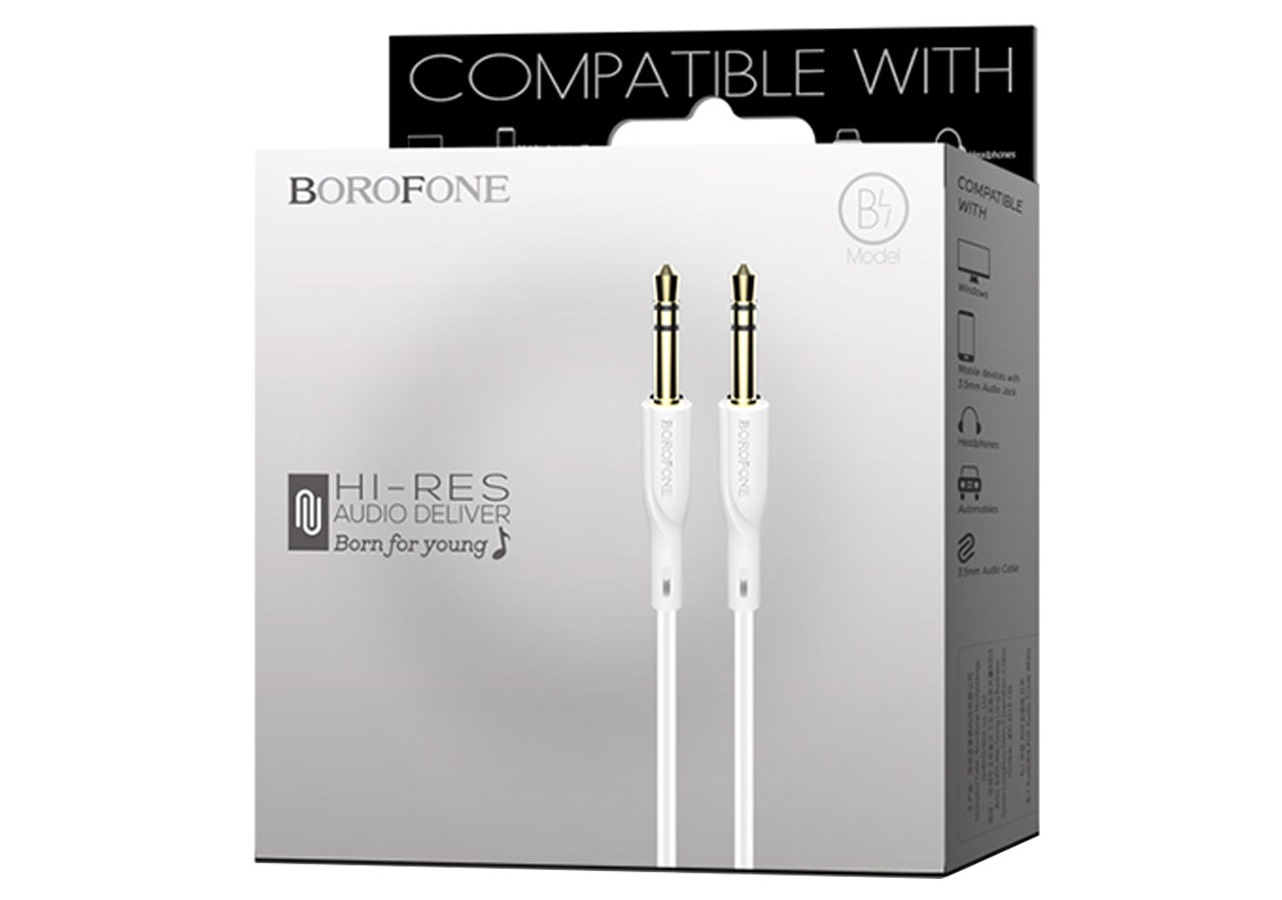 - Кабель BOROFONE BL1 Audolinnk 3.5мм-3,5мм 1м белый