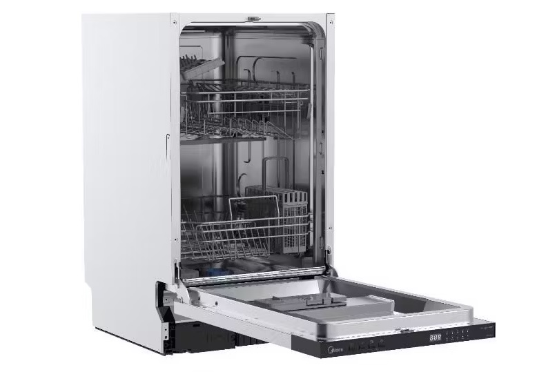 Встраиваемая посудомоечная машина Midea MID45S060, узкая, ширина 44.8см, полновстраиваемая, загрузка 9 комплектов. количество корзин 2 количество программ 5 тип управления электронное