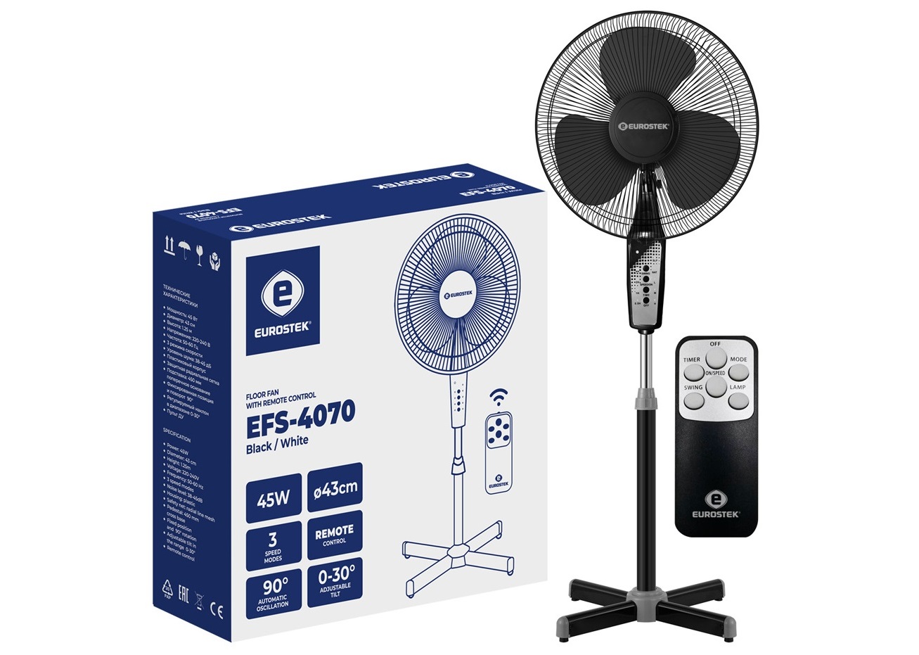 - Вентилятор Eurostek EFS-4070 пульт напольный черный