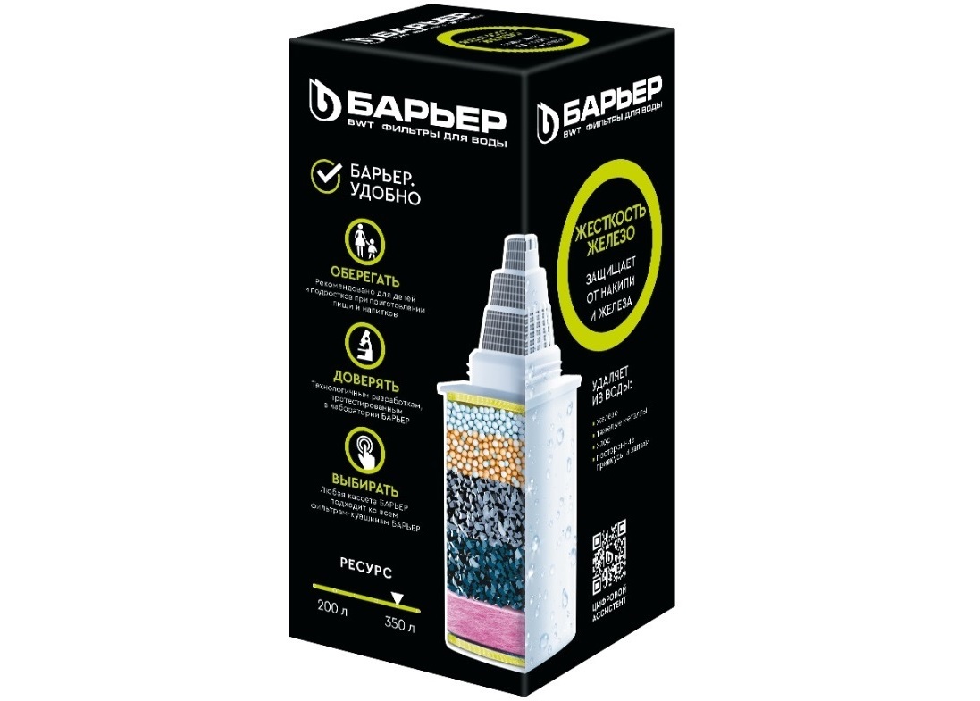 Кассета Жесткость и Железо. Комплексная очистка водопроводной воды от накипи, ржавчины, хлора и других вредных примесей, предотвращает накипь, удаляет посторонние привкусы и запахи, ресурс кассеты 350 литров, подходит для всех кувшинов барьер.