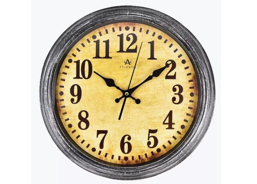Часы настенные Atlantis 46*37 TLD-35189A серые с золотом